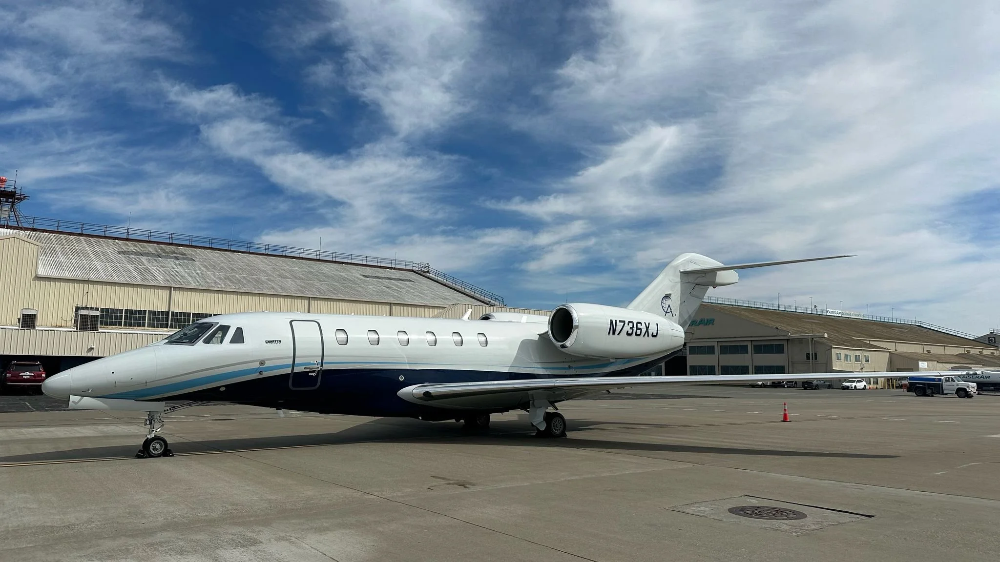 Step aboard a spacious 8 passenger double club configured cabin. A large external baggage compartment will accommodate all your luggage including golf clubs and ski equipment. This aircraft is capable of transcontinental travel with an endurance of 6:15 hours and a cruise speed of up 590 MPH.